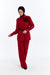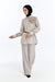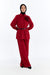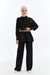 A statement two-piece pant set blending softness, structure, and high-impact elegance. Designed for confident modest style, this ensemble features a long tunic with sculpted tailoring and a modern wide-leg trouser — detailed with contrast finishing and a sculpted 3D floral accessory.